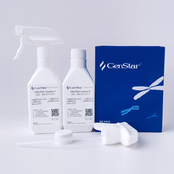 核酸(DNA/RNA)懸深顆粒,即氣溶膠污染物是導致 PCR 結(jié)果的假陽性原因之一。在分子生物學實驗室中,核酸污染的清除是保證實驗準確性的有效措施。本產(chǎn)品由兩種單獨使用沒有毒性的溶液組成,混合后產(chǎn)生活性氧自由基,實現(xiàn)對核酸片段氧化降解,清除核酸(DNA/RNA)懸浮顆粒及物體表面核酸污染。本產(chǎn)品適用于生物實驗室的清潔,通過對超凈臺面、實驗墻面、移液槍外殼等污染累積的地方進行噴涂擦拭,在短時間內(nèi)消除各種操作表面的高水平 DNA 及 RNA 污染,清除氣溶膠污染,消除細菌或病毒類污染。