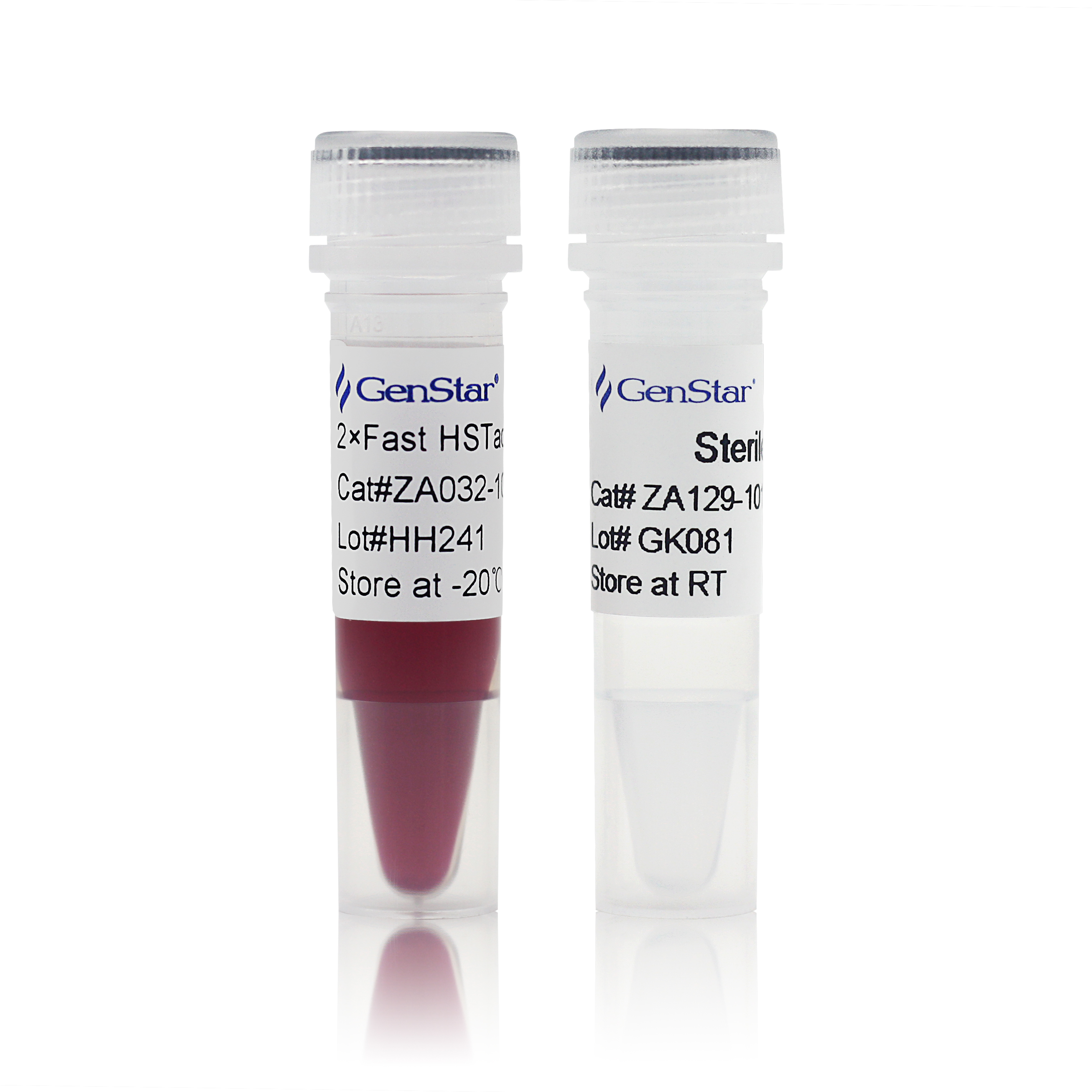 本產(chǎn)品為預(yù)混的含有優(yōu)化濃度的 GenStar Fast HSTaq DNA Polymerase、dNTPs、Mg2+、反應(yīng)緩沖液和穩(wěn)定劑等成分的即用型 2 倍濃度的 PCR 溶液,適用于熱啟動 PCR 反應(yīng)。高溫?zé)釂忧?,?nbsp;Taq 單克隆抗體與 Taq 酶結(jié)合,抑制 Taq 酶的聚合酶活性,從而抑制在低溫條件下出現(xiàn)的由引物和模板 DNA 非特異性雜交或引物二聚體引起的非特異性擴增,提高目的片段的產(chǎn)量。抗 Taq 單克隆抗體在 PCR 反應(yīng)第一循環(huán)的變性步驟中已完全失活,不會阻礙之后的 Taq Polymerase 反應(yīng),大大提高了 PCR 反應(yīng)的靈敏度及特異性。本產(chǎn)品為 2× 預(yù)混 PCR 反應(yīng)體系,使用時只需加入 DNA 模板和引物,并用水稀釋至 1×,無需在冰上操作,具有快速簡便、靈敏度高、特異性強、穩(wěn)定性好等優(yōu)點,可最大限度地減少人為誤差、節(jié)約 PCR 實驗操作時間、降低污染幾率,適合大規(guī)模基因檢測、快速克隆篩選、半定量 PCR 實驗和微量 DNA 模板的檢測等。使用本品擴增的 PCR 產(chǎn)物帶有 3' 端突出 "A" 堿基,可直接用于 TA 克隆。