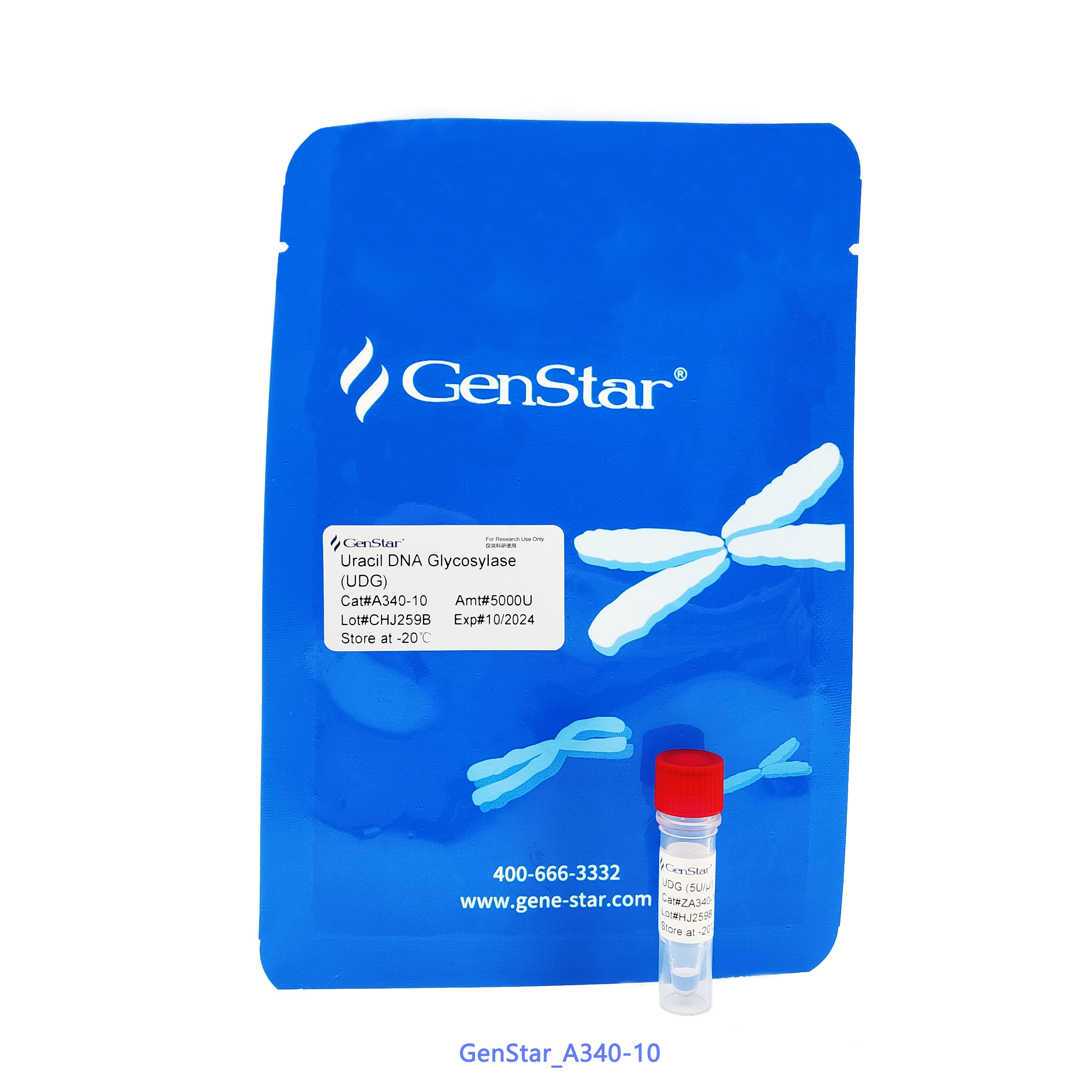 本產(chǎn)品為大腸桿菌來源的重組尿嘧啶 DNA 糖基化酶(UDG),可催化水解含有尿嘧啶的 DNA 鏈和糖磷酸骨架的 N-糖苷鍵,釋放游離尿嘧啶。UDG 能有效水解單鏈或雙鏈 DNA 上的尿嘧啶,但對寡聚核苷酸(<6 個堿基)和 RNA 無活性。