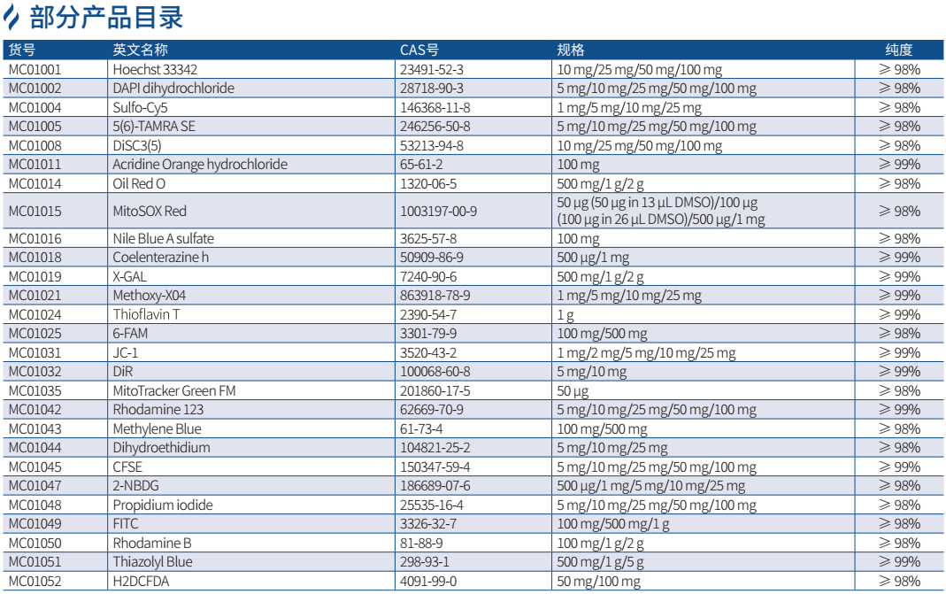 GenStar 目前擁有近 200 種熒光染料試劑,覆蓋細(xì)胞染色分析、動物活體成像、生物偶聯(lián)、標(biāo)記化學(xué)等眾多熱門研究領(lǐng)域,具有靈敏度高,穩(wěn)定性好,熒光強(qiáng)度高等特點。