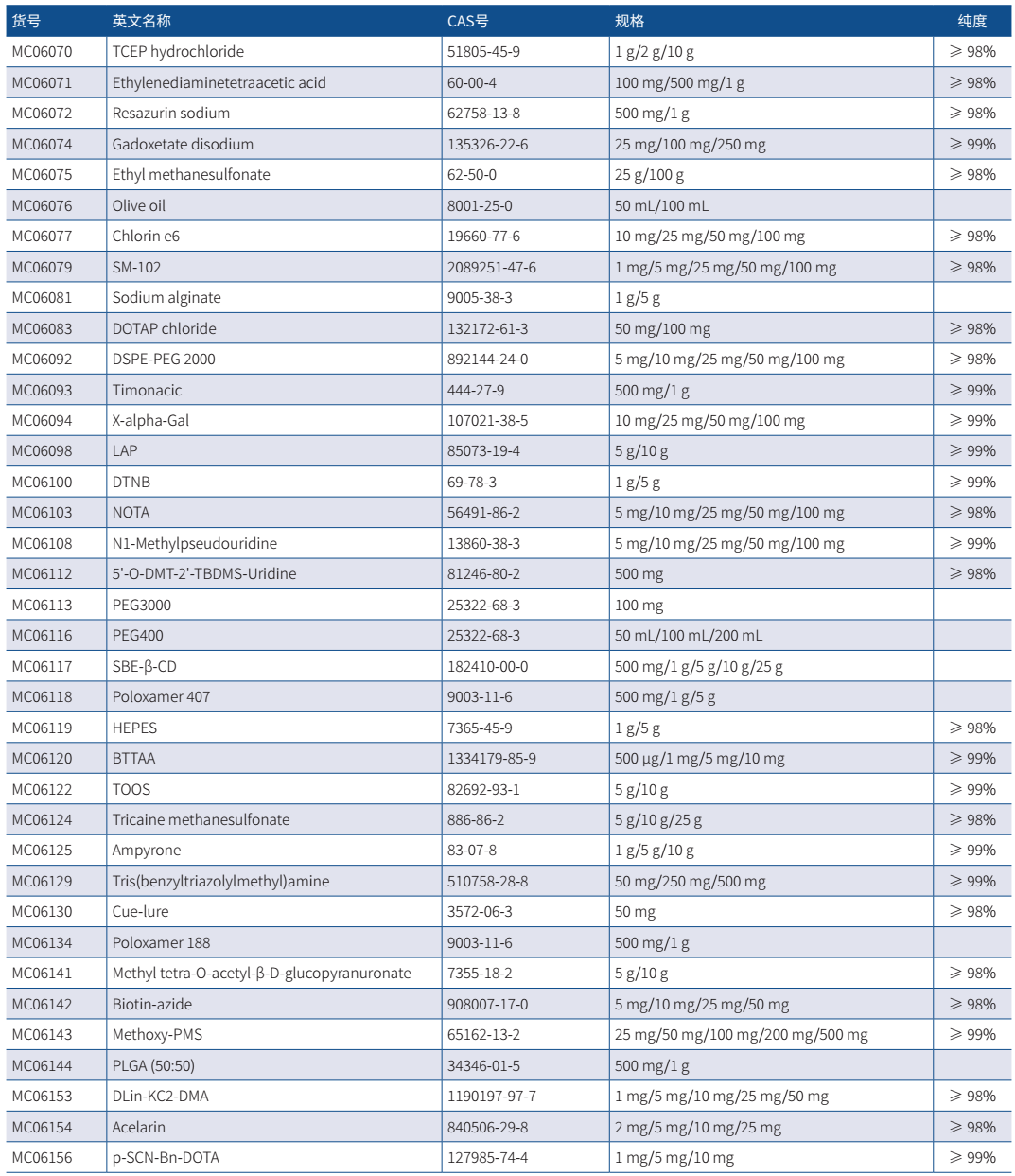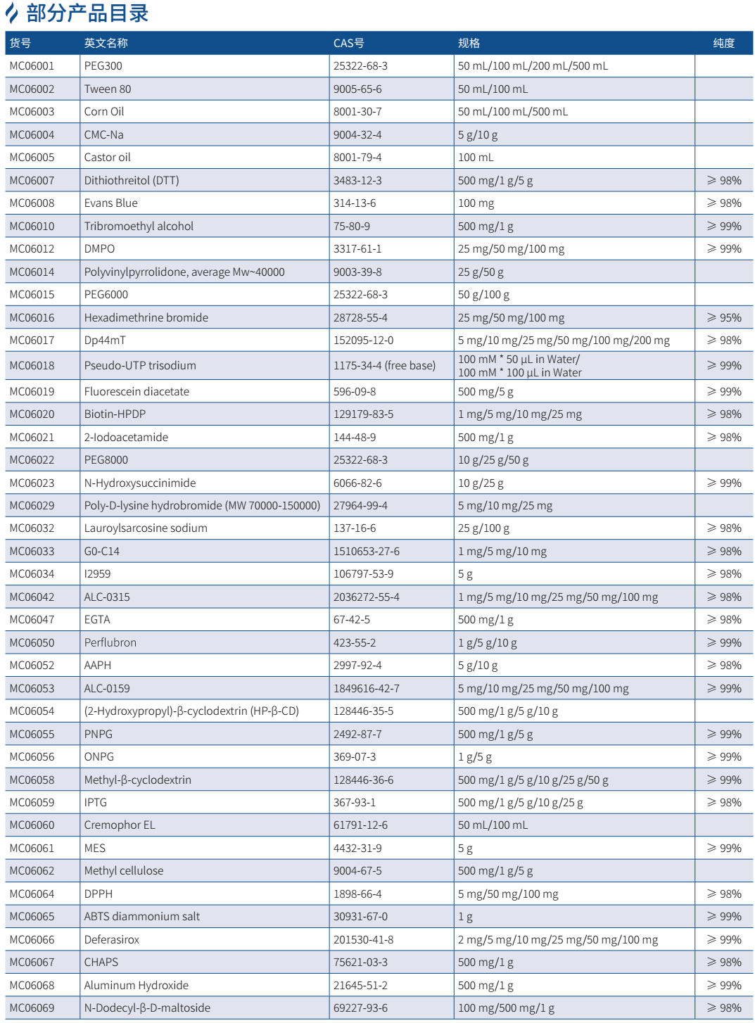 本界面只顯示部分產品信息,若想獲取更多小分子系列產品信息,請聯(lián)系我們銷售或致電技術支持熱線:400-666-3332