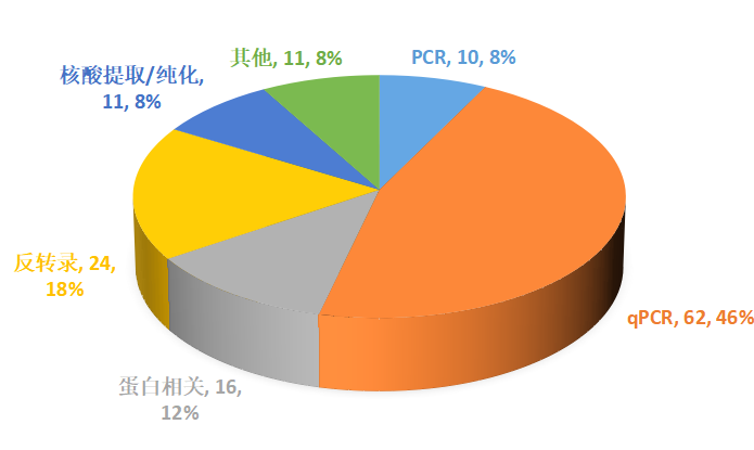 GenStar產(chǎn)品涉及163個(gè);共有133篇SCI文章,其中IF>5的文章72篇,本季度IF值最高達(dá)39.3。qPCR系列產(chǎn)品當(dāng)仁不讓依然是發(fā)表文章最多,應(yīng)用最廣的明星系列產(chǎn)品,其發(fā)表文獻(xiàn)占62%。