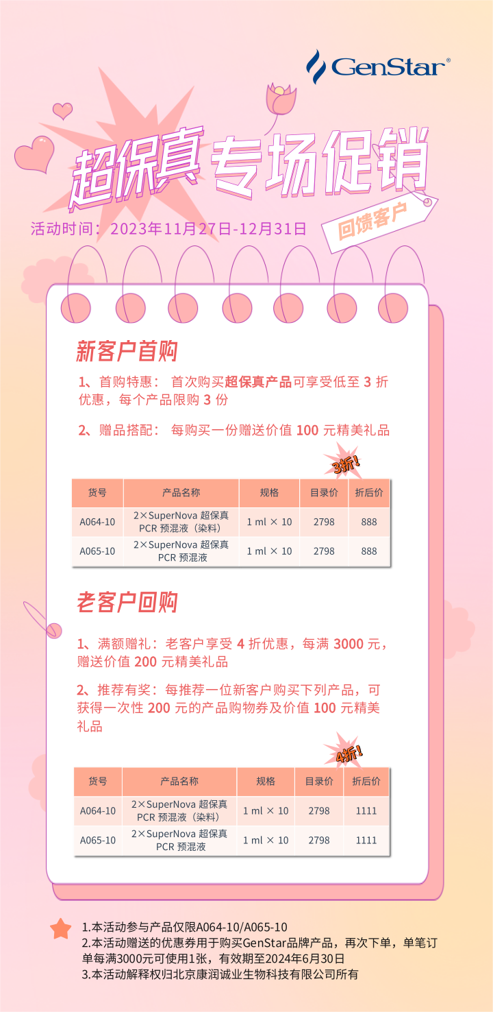 獲此殊榮,離不開廣大客戶的信任和支持,GenStar 特推出超保真產(chǎn)品終極感恩特惠購,和您共享這份榮譽和喜悅,與您共赴生命科學成功之路。