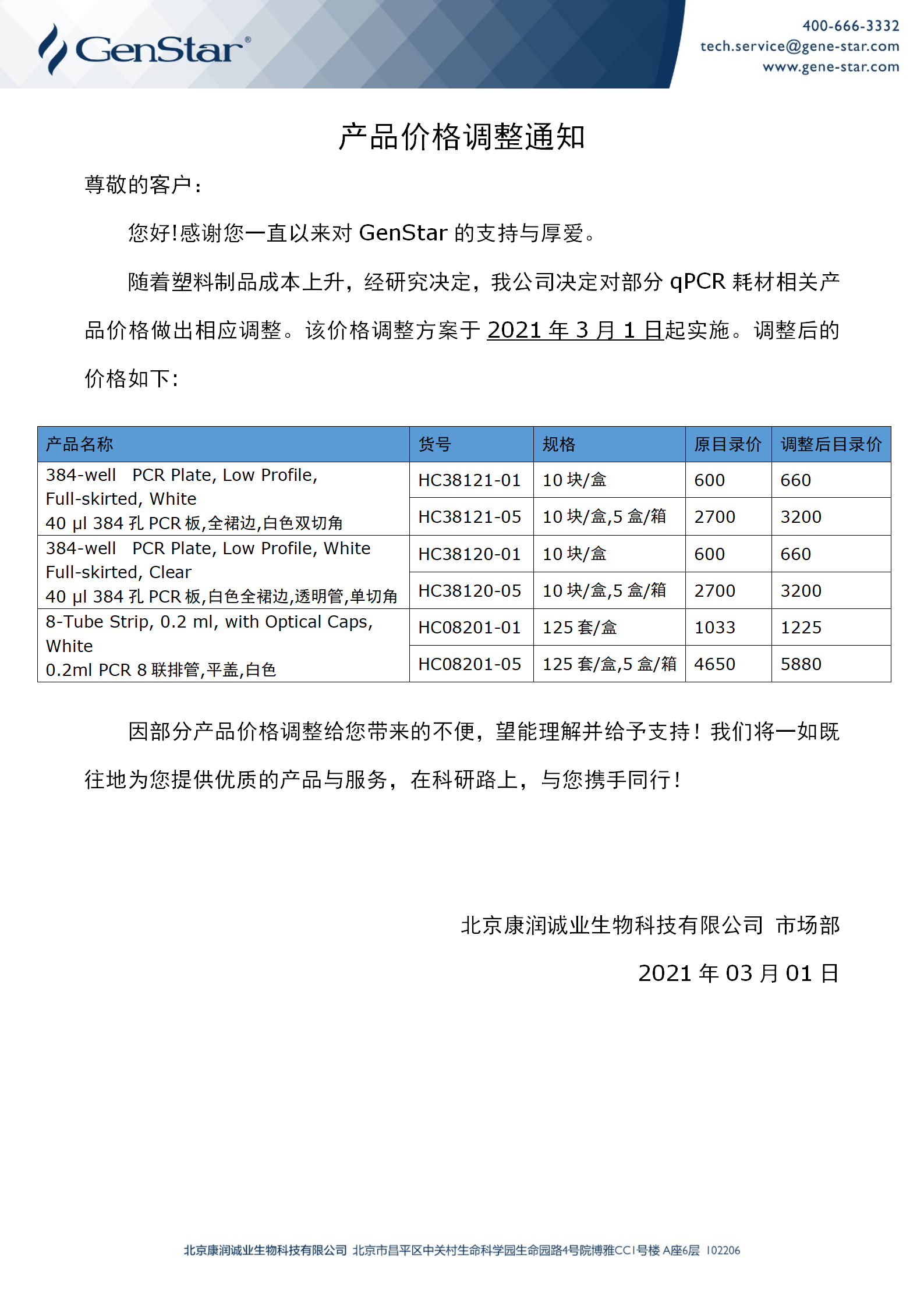 qPCR耗材相關(guān)產(chǎn)品價(jià)格調(diào)整