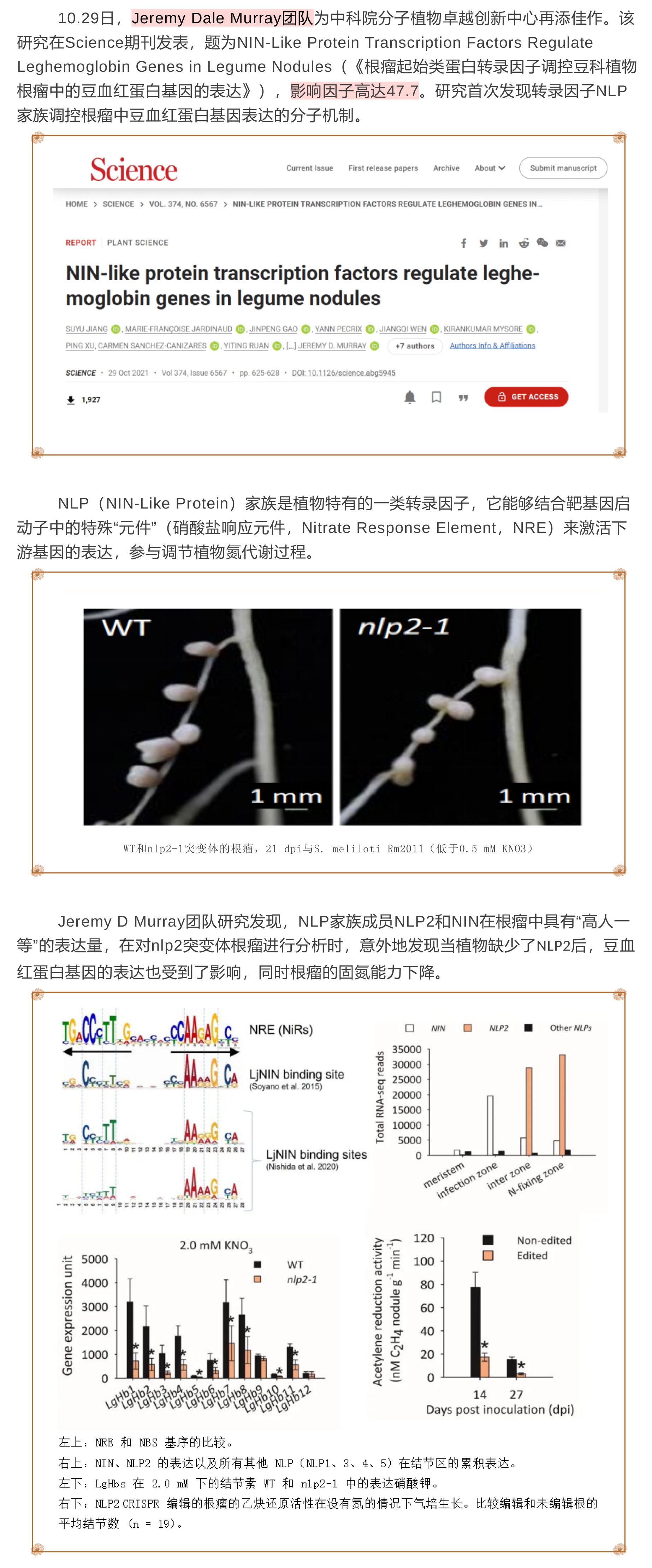 該團隊進一步研究發(fā)現(xiàn)NLP家族成員NIN和NLP2通過直接結(jié)合豆科植物保守的雙重硝酸鹽響應(yīng)元件(dNRE)來激活根瘤中豆血紅蛋白基因的表達,平衡固氮所必需的氧氣微環(huán)境。系統(tǒng)發(fā)育分析表明,dNRE和NLP2僅在豆科植物中高度保守,暗示著其進化有助于提高根瘤中豆血紅蛋白的表達水平。而非共生血紅蛋白的攜氧特性有助于植物在低氧環(huán)境中生存。